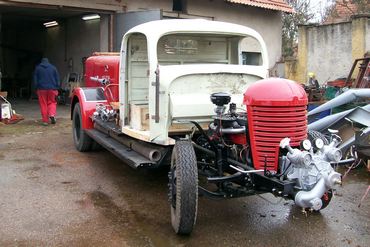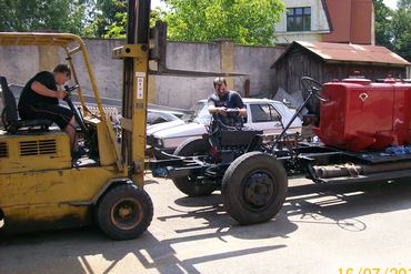 V první polovině roku 2011 jsme pokročili v práci na nástavbě vozidla a konečně se nám podařilo zkompletovat motor a čerpadlo. V červenci 2011 jsme motor i čerpadlo usadili do podvozku vozidla.